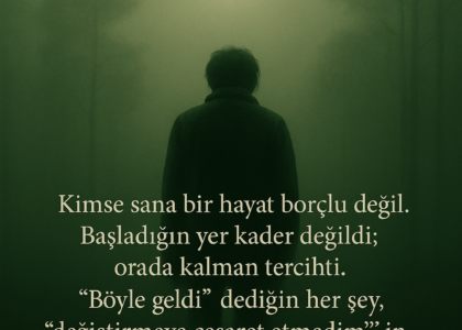 Kimse sana bir hayat borçlu değil. Başladığın yer kader değildi; orada kalman tercihti. ”Böyle Geldi”