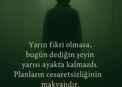 Yarın fikri olmasa, bugün dediğin şeyin yarısı ayakta kalmazdı. Planların cesaretsizliğinin makyajıdır. Beklemek harekete geçmeyenlerin