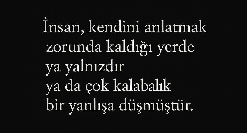 İnsan kendini anlatmak zorunda kaldığı yerde ya yalnızdır yada çok kalabalık bir yanlışa düşmüştür.