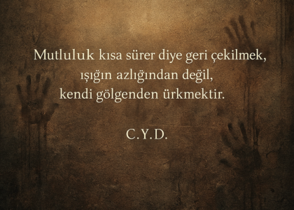 Mutluluk kısa sürer diye geri çekilmek, ışığın azlığından değil, kendi gölgenden ürkmektir. Celda Y.D.