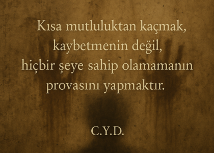 Kısa mutluluktan kaçmak, kaybetmenin değil, hiçbir şeye sahip olamamanın provasını yapmaktır. Celda Y.D.