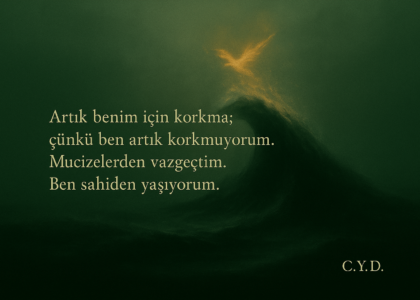 Artık benim için korkma; Çünkü ben artık korkmuyorum. Mucizelerden vazgeçtim. Ben sahiden yaşıyorum. Celda Y.D.