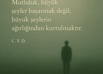 Mutluluk, büyük şeyler başarmak değil; büyük şeylerin ağırlığından kurtulmaktır. Celda Y.D.