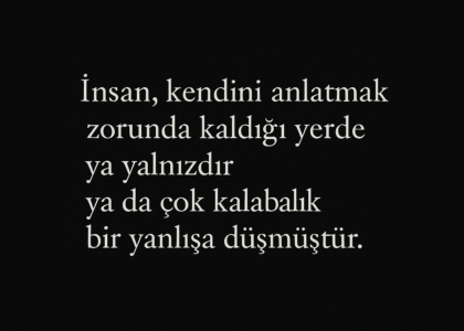 İnsan kendini anlatmak zorunda kaldığı yerde ya yalnızdır yada çok kalabalık bir yanlışa düşmüştür. Celda