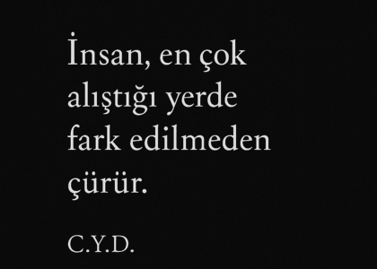 İnsan, en çok alıştığı yerde fark edilmeden çürür. Celda Y.D.