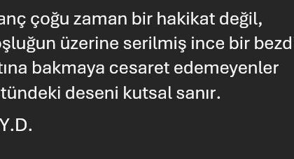 İnanç çoğu zaman bir hakikat değil, boşluğun üzerine serilmiş ince bir bezdir. Altına bakmaya cesaret